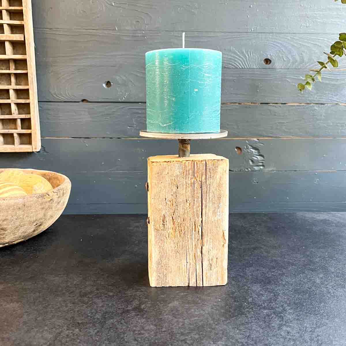 Maße: 20cm hoch (ohne Kerze), der Treibholzstamm ist 10 x 10cm