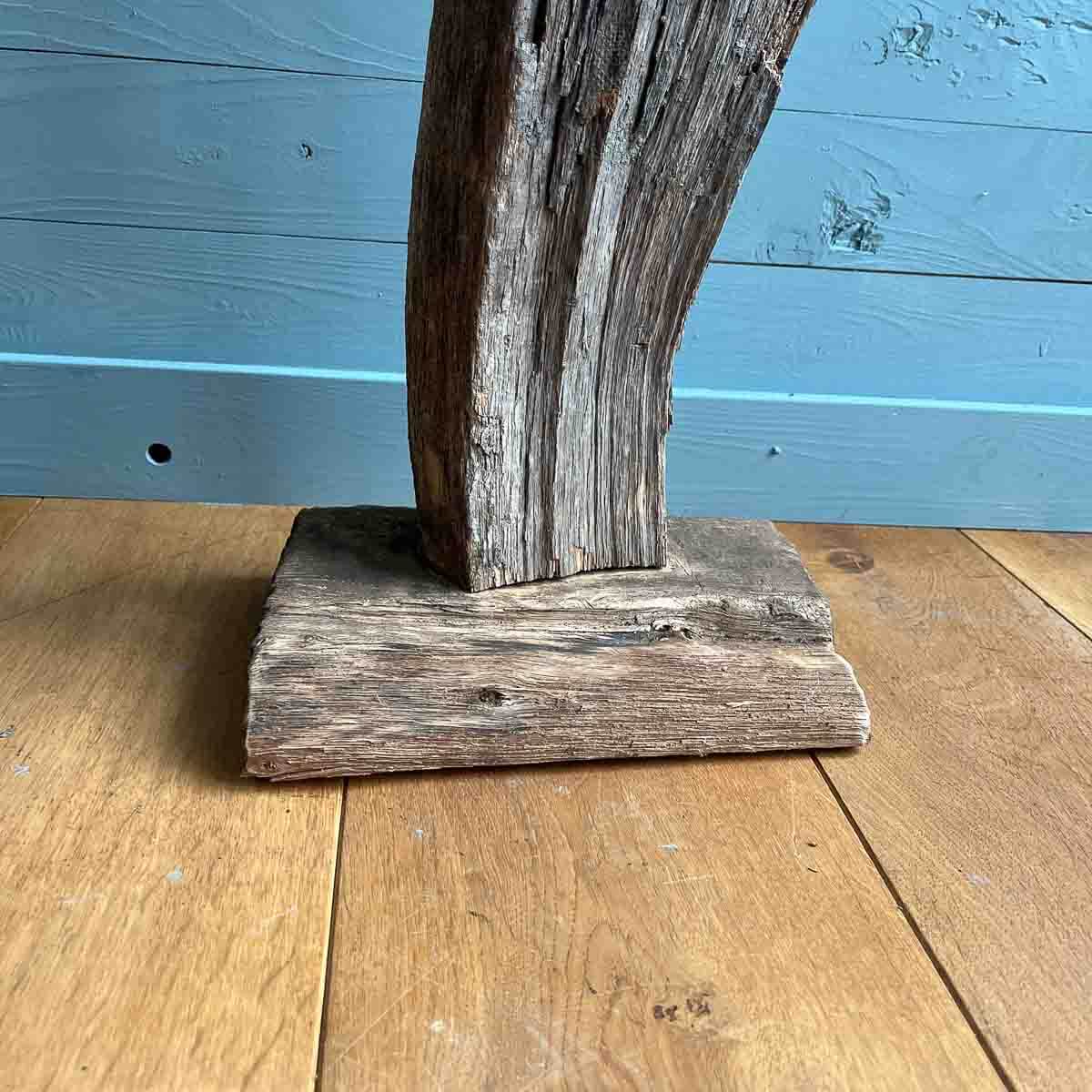 Sein Holz wurde von der Elbe getragen, vom Wasser gekennzeichnet und schließlich am Strand von Hamburg Blankenese angespült. Wind, wellen und Zeit haben es geformt, bis es seine endgültige Gestalt fand. Jeder Riss, jede Kerbe erzählt von seiner Reise und macht ihn zu einem unverwechselbaren Stück Natur in dein Zuhause.