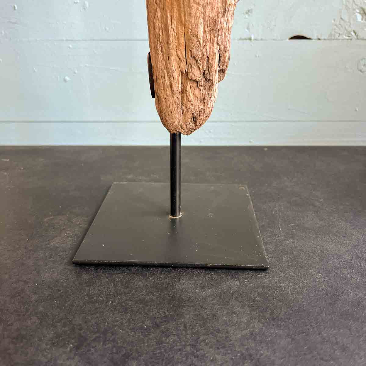 Heute entsteht daraus die Treibholz Skulptur Hafenschein auf einem schwarzen Metallständer- ein aufrechtes, ehrliches Stück Elbe, das von Ankommen erzählt und zugleich Mut macht, sich treiben zu lassen.