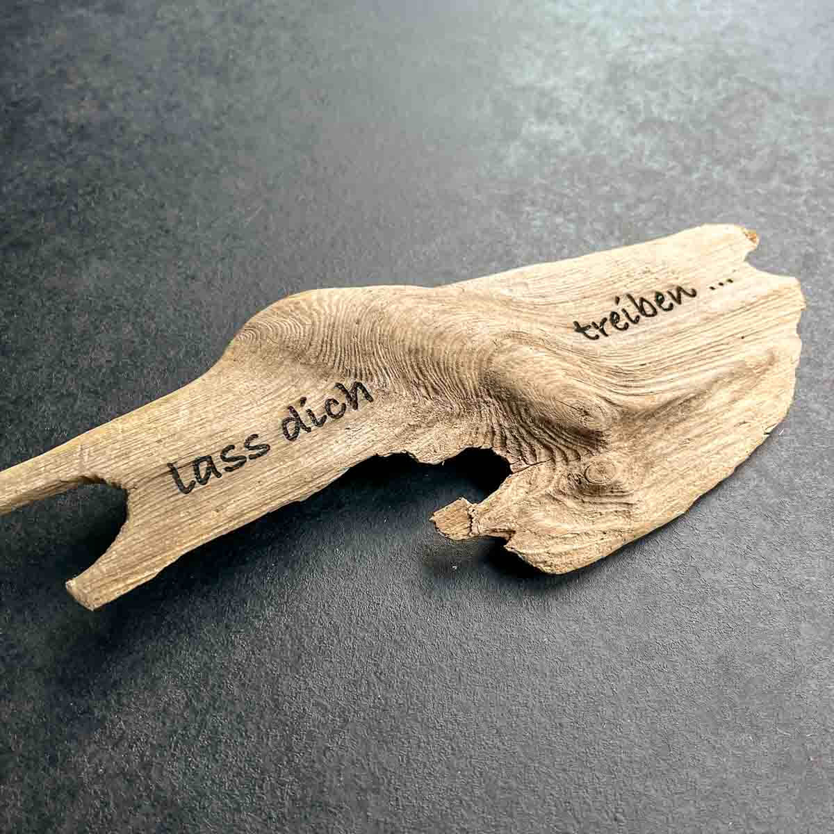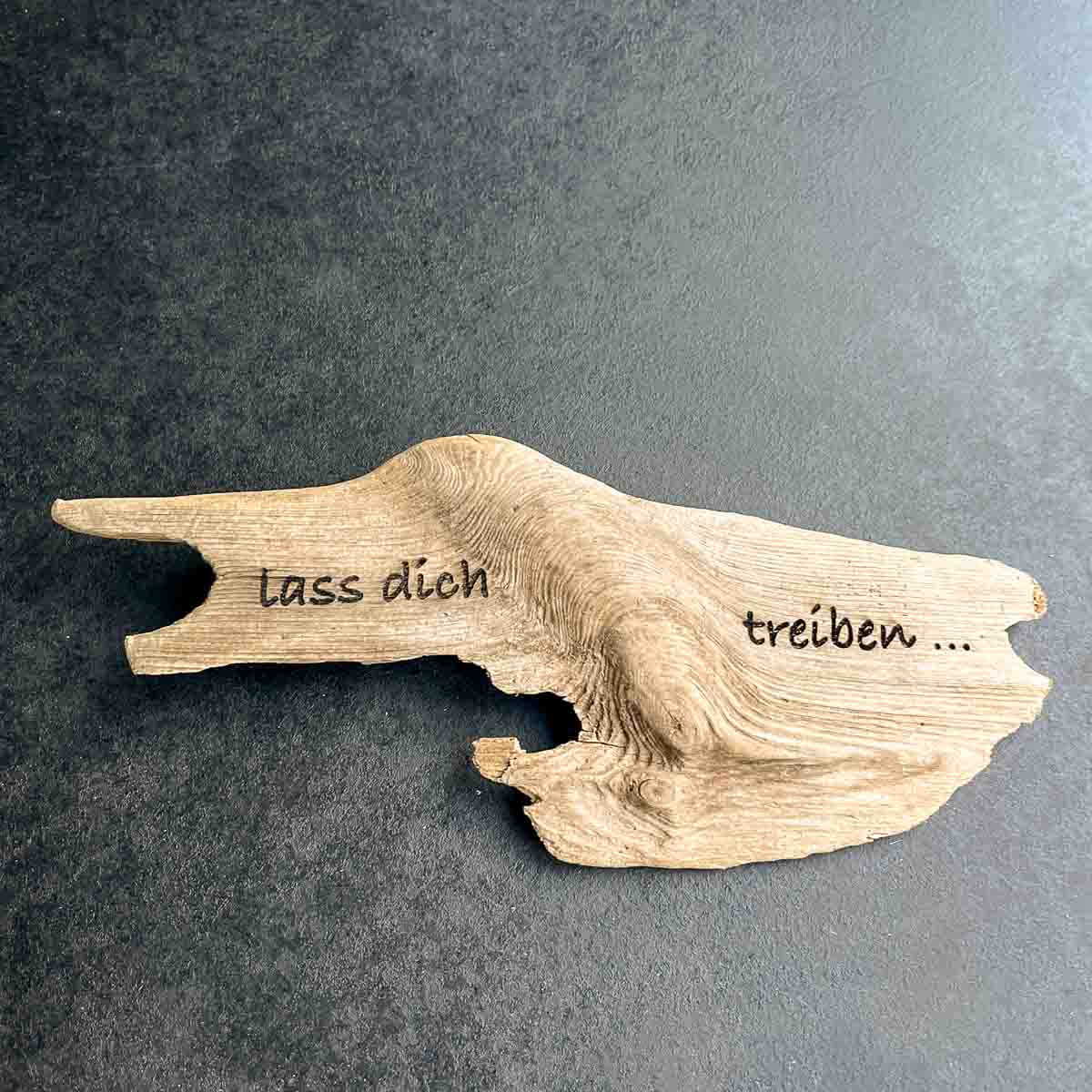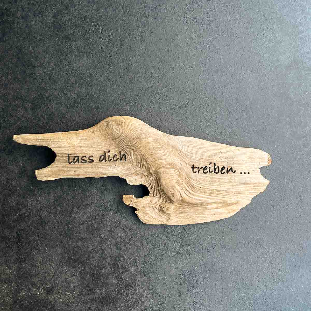 Eine feine Gravur mit den Worten: Lass dich treiben…