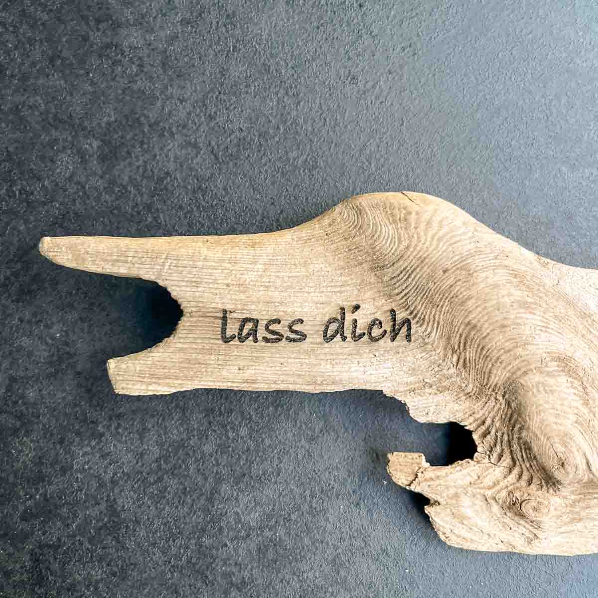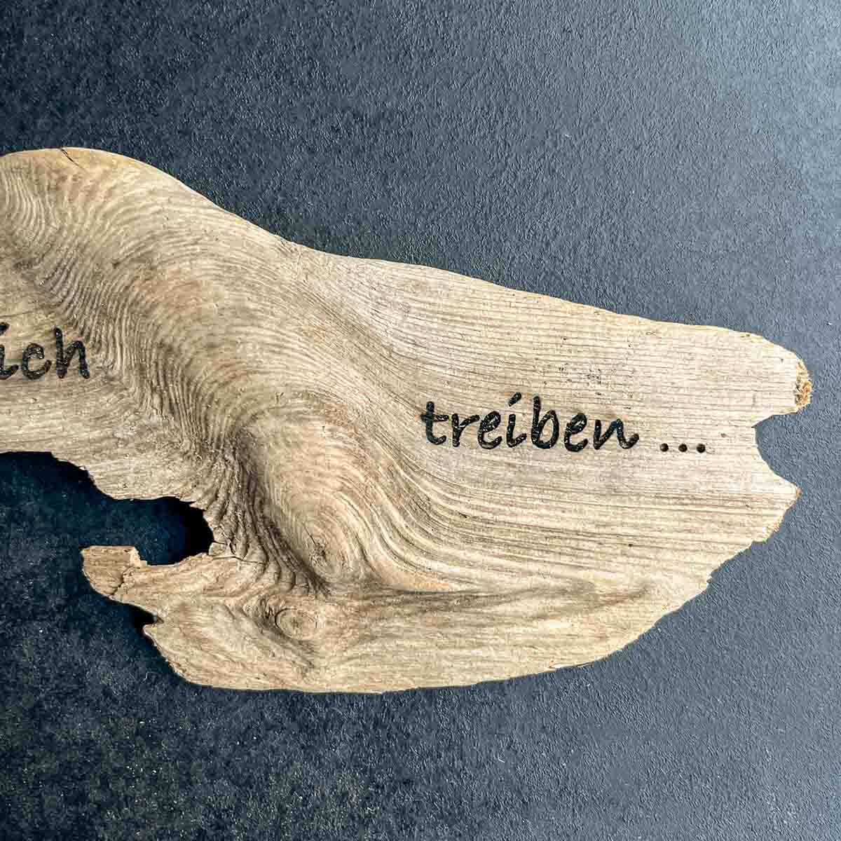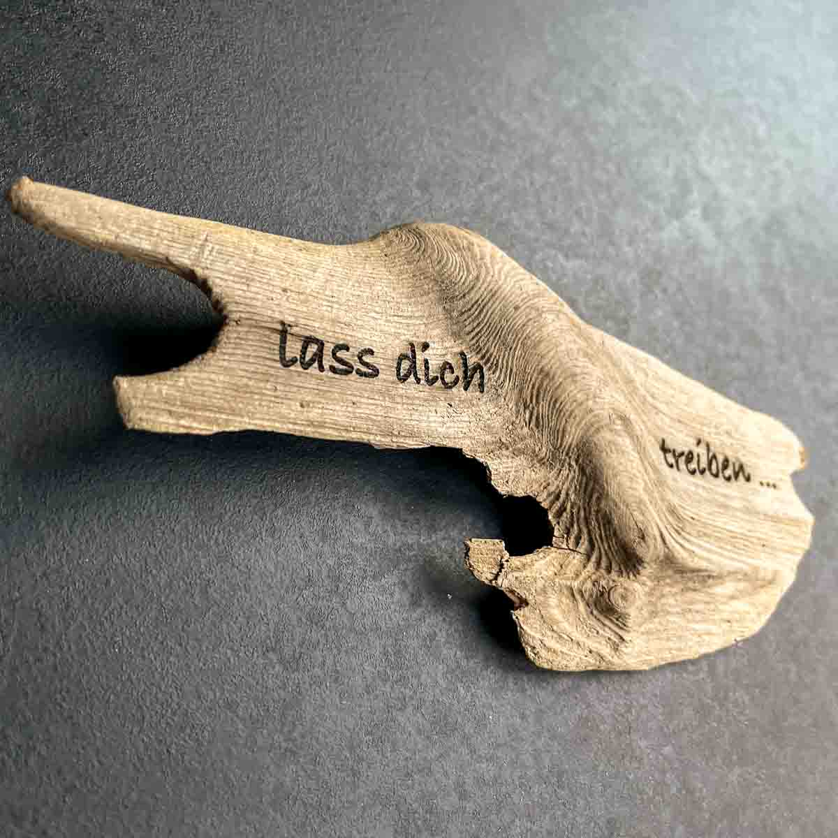 Eine feine Gravur mit den Worten: Lass dich treiben…